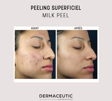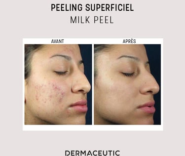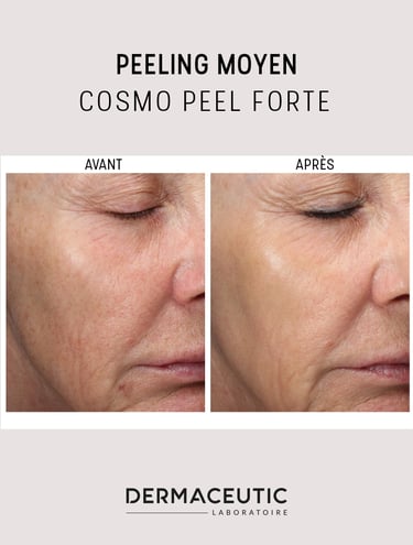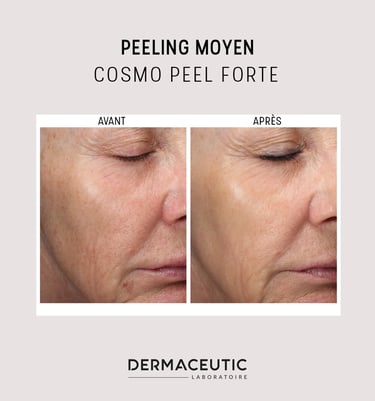 Le peeling est une technique de soin de la peau qui consiste à retirer les couches superficielles de l'épiderme afin de stimuler le renouvellement cellulaire et d'améliorer la texture et l'apparence de la peau. Il existe plusieurs types de peeling esthétique, allant de doux à profond, et chaque type convient à différents types de peau et problèmes de peau. Les résultats peuvent varier en fonction de la profondeur du peeling, mais en général, la peau sera plus lisse, plus claire et rajeunie après la procédure. Il est important de discuter de vos objectifs et préoccupations de peau avec un professionnel qualifié avant de décider du type de peeling esthétique qui convient le mieux à votre peau. Une préparation est nécessaire au minimum 15 jours avant chaque peeling avec des produits adaptés que le médecin pourra vous prescrire selon votre type de peau.
